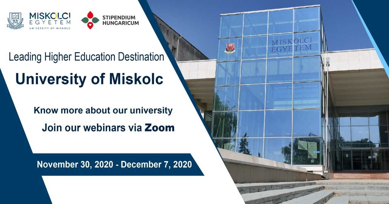 Join them in their zoom sessions between 30 November – 7 December2020, to get a closer look into Northern Hungary, the city of Miskolc, and to get to know the study programs, courses, research opportunities and students’ life here.
